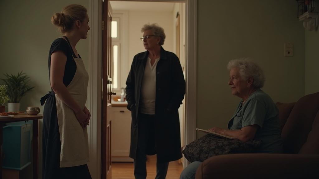 Soțul ieși pe hol, se uită prin vizor și deschise ușa. În prag stătea Nela — într-un palton închis la culoare și cu o geantă voluminoasă.