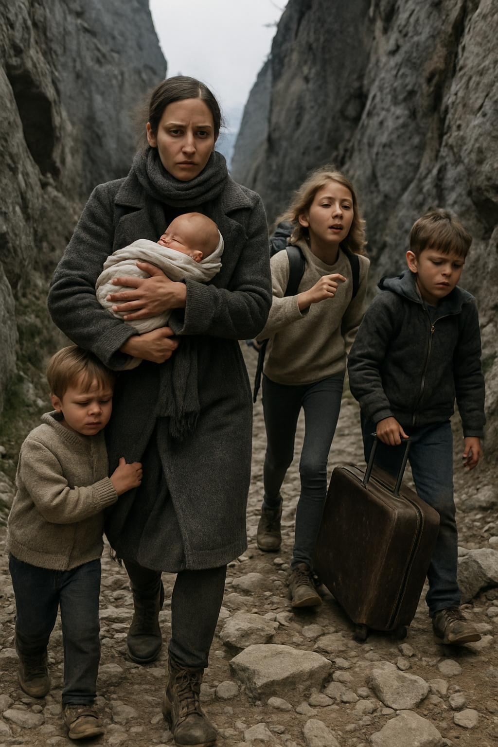 Paula Argeșean urca anevoie pe poteca plină de bolovani, cu pruncul strâns la piept și inima bătându‑i nebunește. Vântul rece al muntelui îi biciuia obrajii, însă adevărata înghețare nu venea de la frig, ci de la ceea ce lăsase în urmă. Denisa Bogdănescu, la doar nouă ani, pășea în urma ei cu un rucsac uriaș, aproape cât trupul ei firav. Vlad Ursuleanu, de șapte ani, târa după el o valiză veche, care scârțâia supărător de fiecare dată când lovea pietrele. Tiberiu Dunărescu, mezinul, se agăța de fusta mamei, cu ochii umflați și roșii de atâta plâns. Mergeau fără oprire de noaptea trecută, ca și cum iadul însuși le-ar fi suflat în ceafă. Și, într-un fel, chiar așa era.
