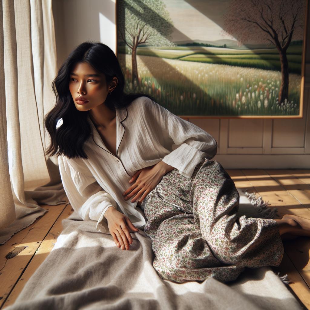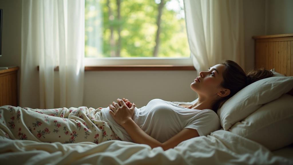Elena Ionescu stătea întinsă pe spate deasupra păturii, cu picioarele întinse și încrucișate. Mâinile îi erau odihnite pe burtă, degetele împletite într-un pod. Privea pe fereastră, unde o adiere legăna crengile copacilor, iar pe cerul albastru pluteau nori pufoși.