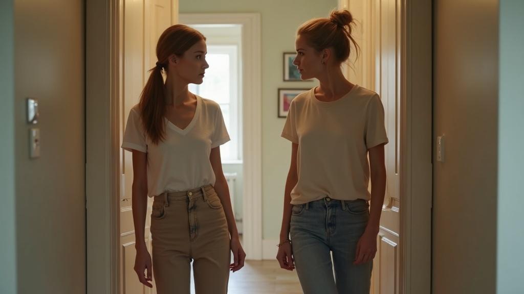 Am încercat să mă privesc prin ochii ei: tricou lălâu, pantaloni tociți de vreme, martori ai mai multor epoci, părul prins neglijent cu prima elastică găsită, fața complet lipsită de machiaj.