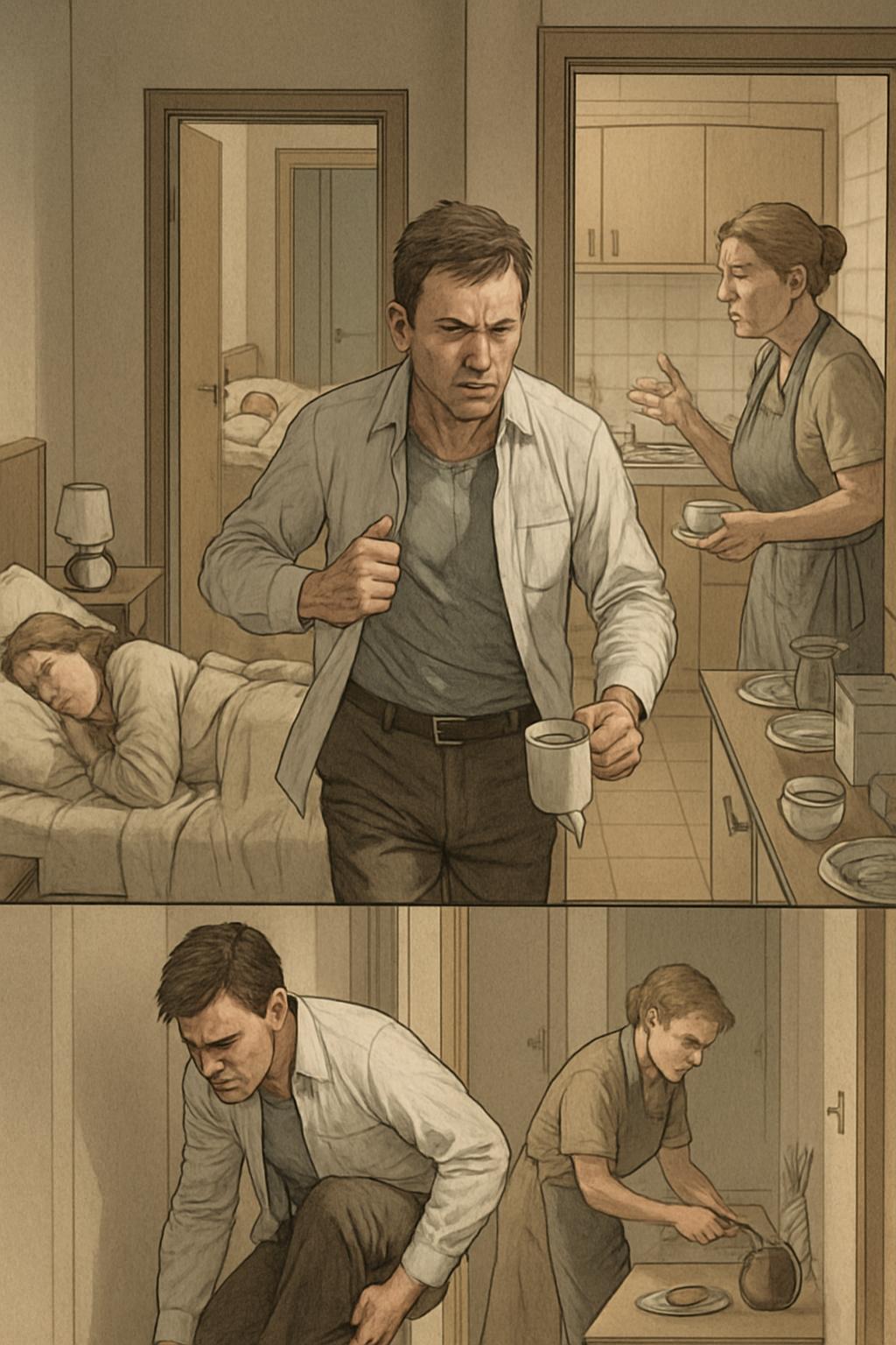Adrian Morar a îndepărtat cu grijă mâna soției de pe piept și s-a ridicat din pat. Din bucătărie se auzea clinchetul vaselor; Cornelia Corbuleanu era deja în plină activitate. A aruncat o privire spre ceas.