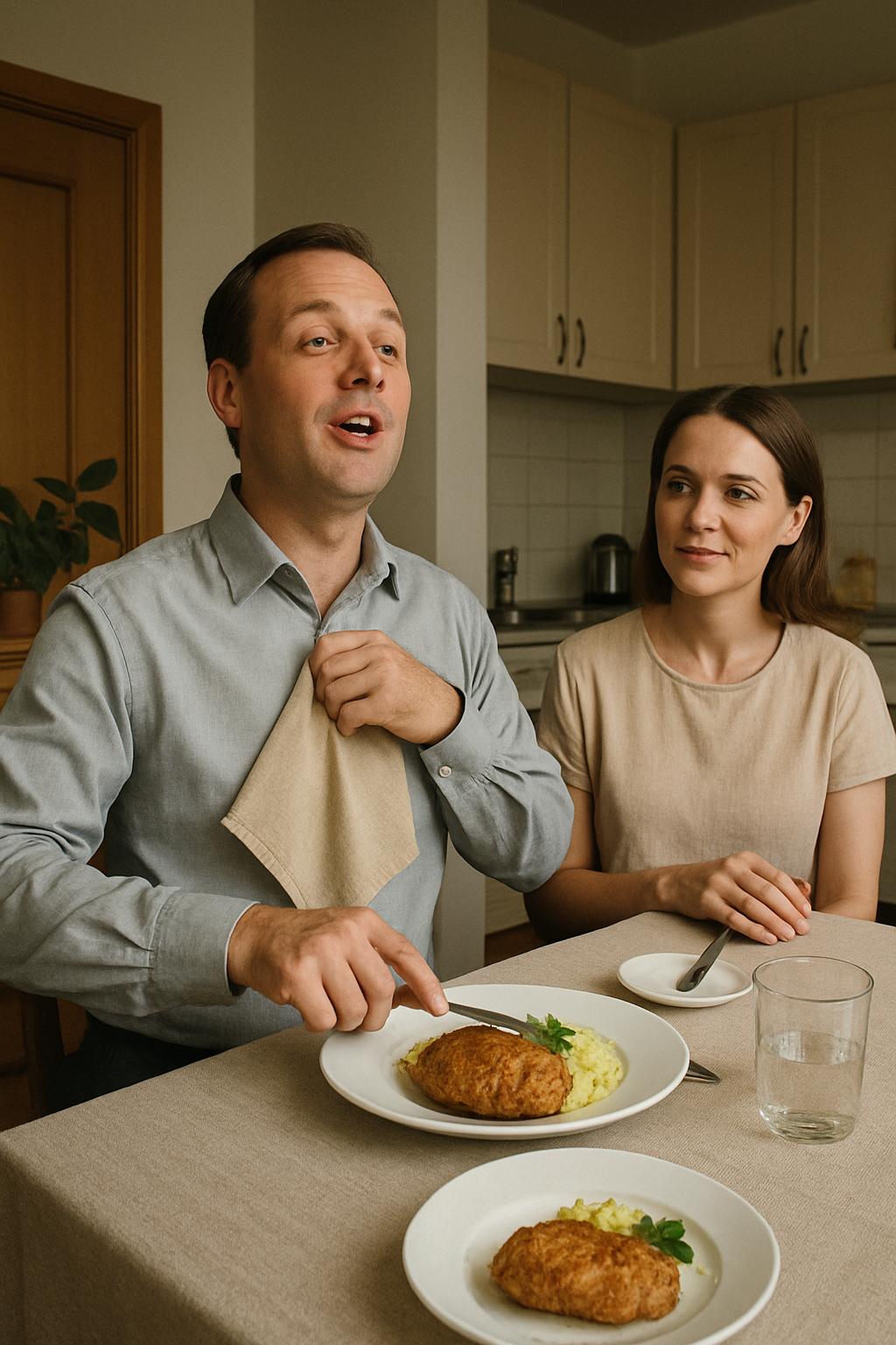 Când soțul meu a împins farfuria la o parte cu o mină de parcă nu i-aș fi pus în față niște cotlete fragede, ci o citație de tribunal, și a încremenit într-o postură teatrală, am înțeles imediat: urma să țină un discurs. Octavian Dănescu și-a aranjat cu grijă șervețelul, și-a dres glasul și, privind parcă prin mine — probabil spre un viitor capitalist strălucitor, existent doar în imaginația lui — a rostit răspicat: