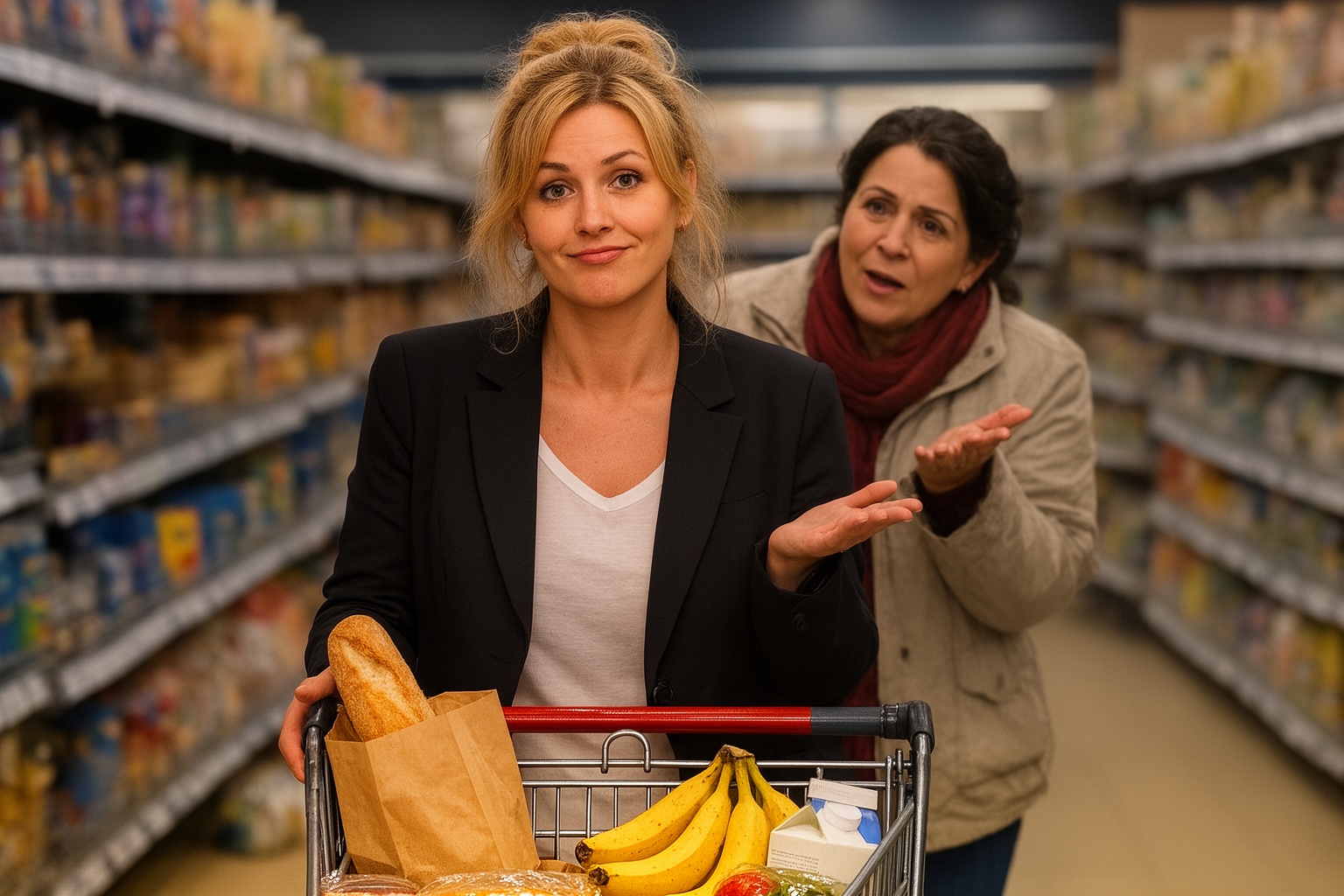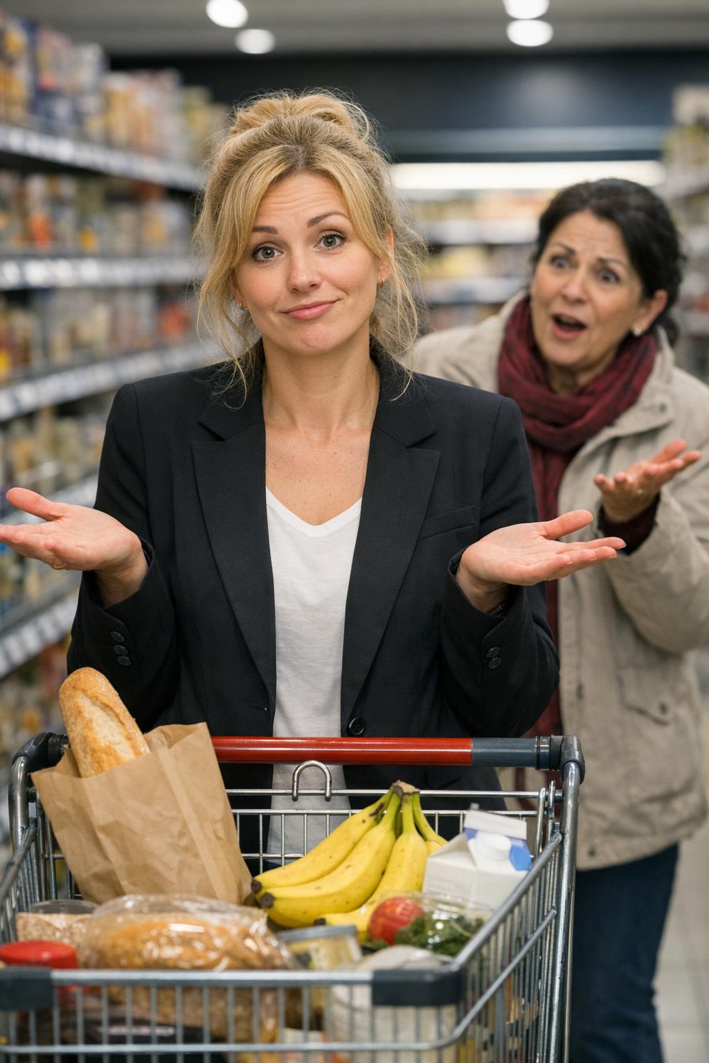 Emilia Fieraru și-a dus mâinile la piept cu un gest teatral atât de bine jucat, încât casierița a rămas o clipă nemișcată, ținând în aer o pungă cu creveți congelați.
