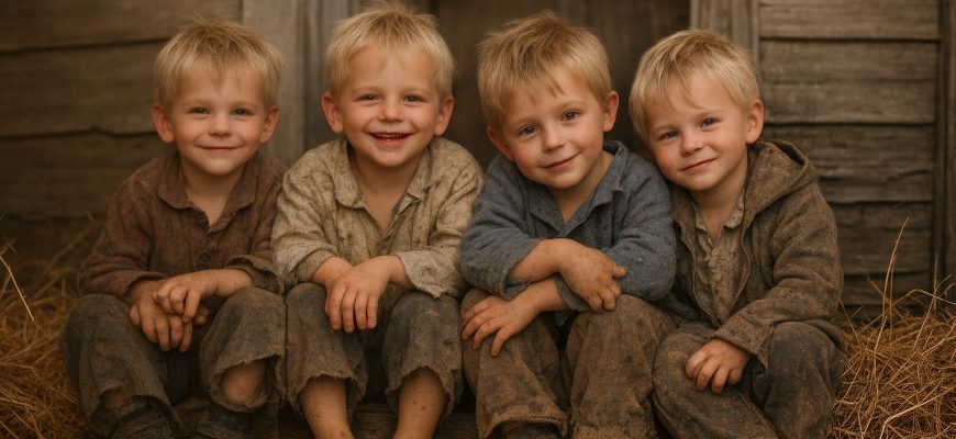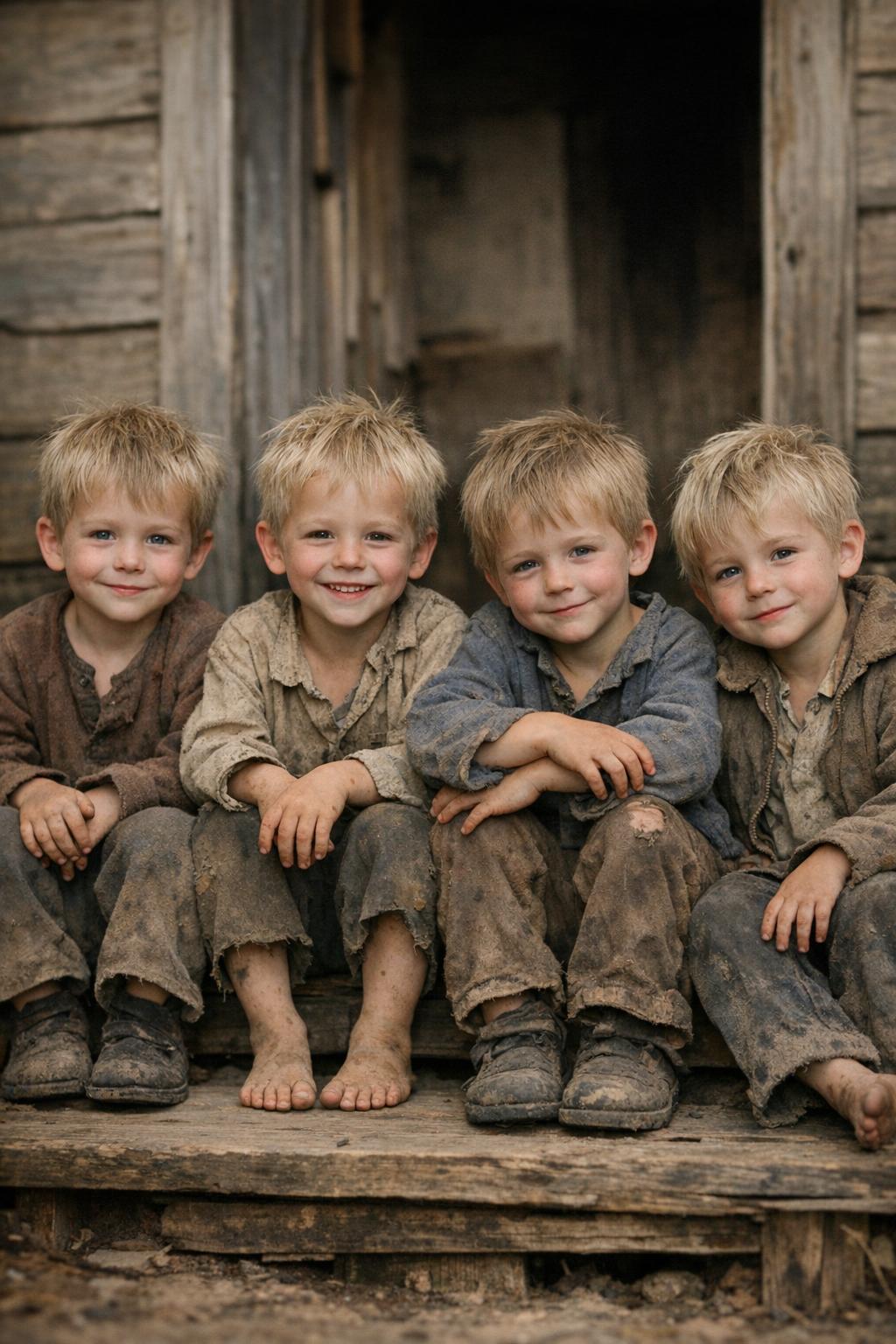 Copiii nu scoteau un sunet, însă ochii lor mari, speriați, spuneau totul. Două fetițe și doi băieți, de aproape aceeași vârstă — niciunul mai mare de un an.
