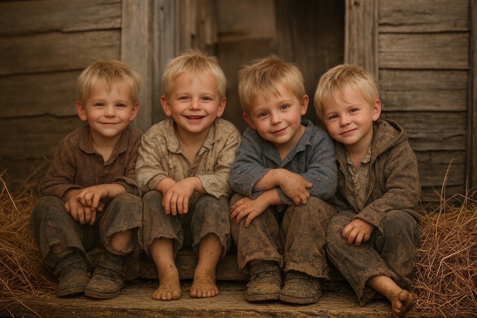 Pe scândurile ude ale prispei, luminate palid de flacăra tremurătoare a lămpii, stăteau patru prunci înfășurați în pături vechi, roase de timp.