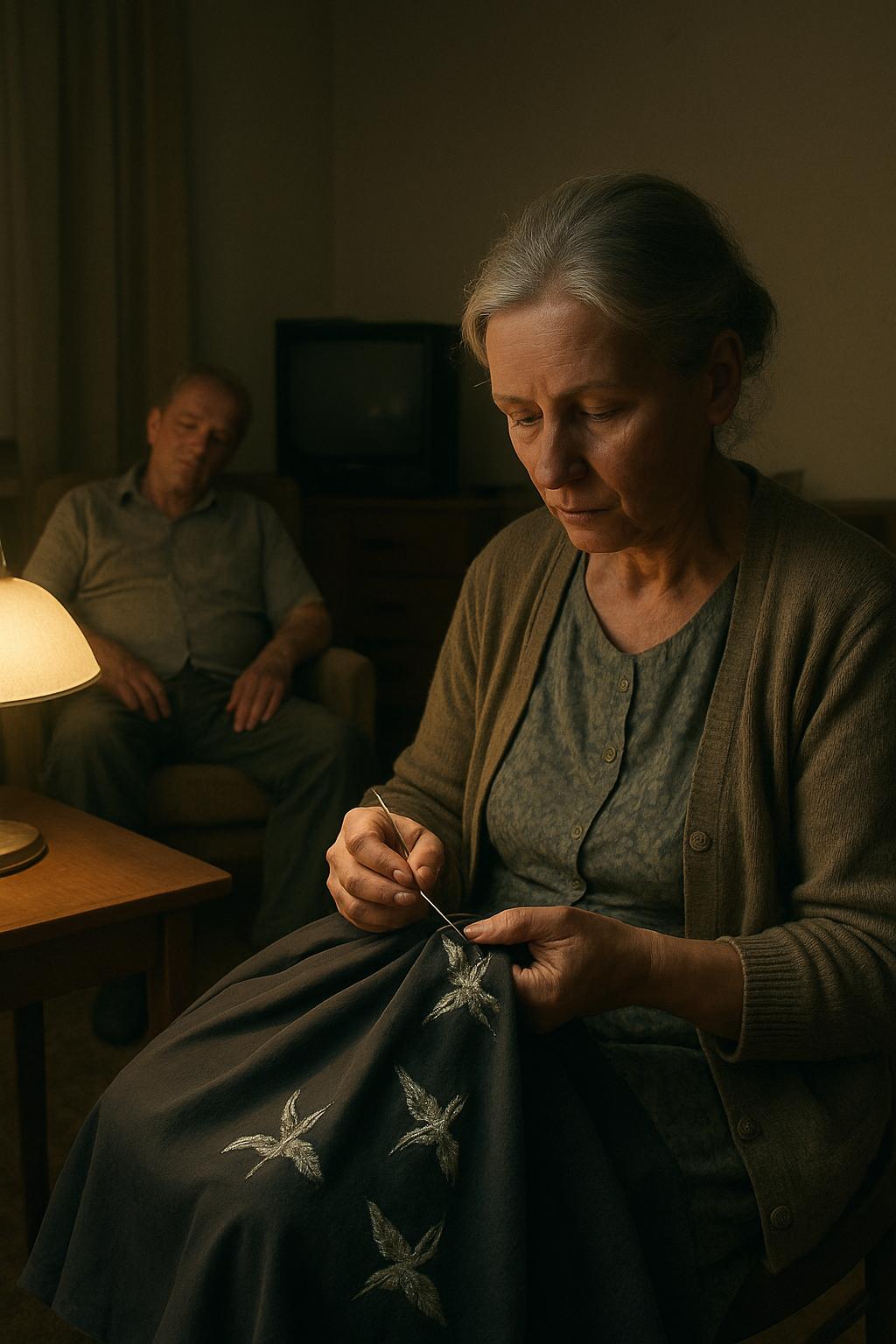 Timp de trei luni — nouăzeci de nopți smulse somnului — a lucrat fără răgaz. Pe tiv prindeau viață păsări argintii, așezate una câte una. Le broda manual, cu împunsături fine, așa cum o învățase mama ei odinioară.