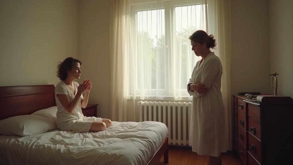 Lângă pat, cu brațele încrucișate și cu buzele strânse, stătea Rodica Stănescu. Își aruncase un halat peste palton, semn că venise în grabă. Privirea ei o judeca aspru pe Daria, de parcă simplul fapt că dormise până la opt și jumătate ar fi fost o vină de neiertat.