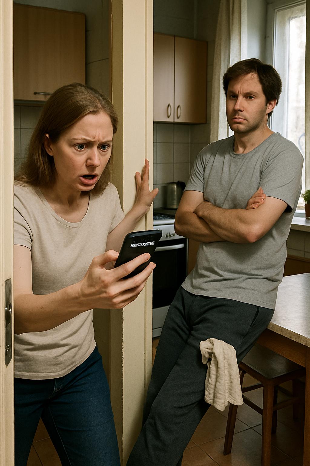 Soțul ei a apărut în pragul bucătăriei, ștergându-și palmele cu un prosop. Pe chip îi plutea acea expresie ușor iritată, de parcă fusese smuls dintr-o activitate mult mai importantă. Tricoul gri deschis, pantalonii de casă, părul șaten ușor răvășit — atât de familiar, și totuși, în clipa aceea, parcă era un străin.