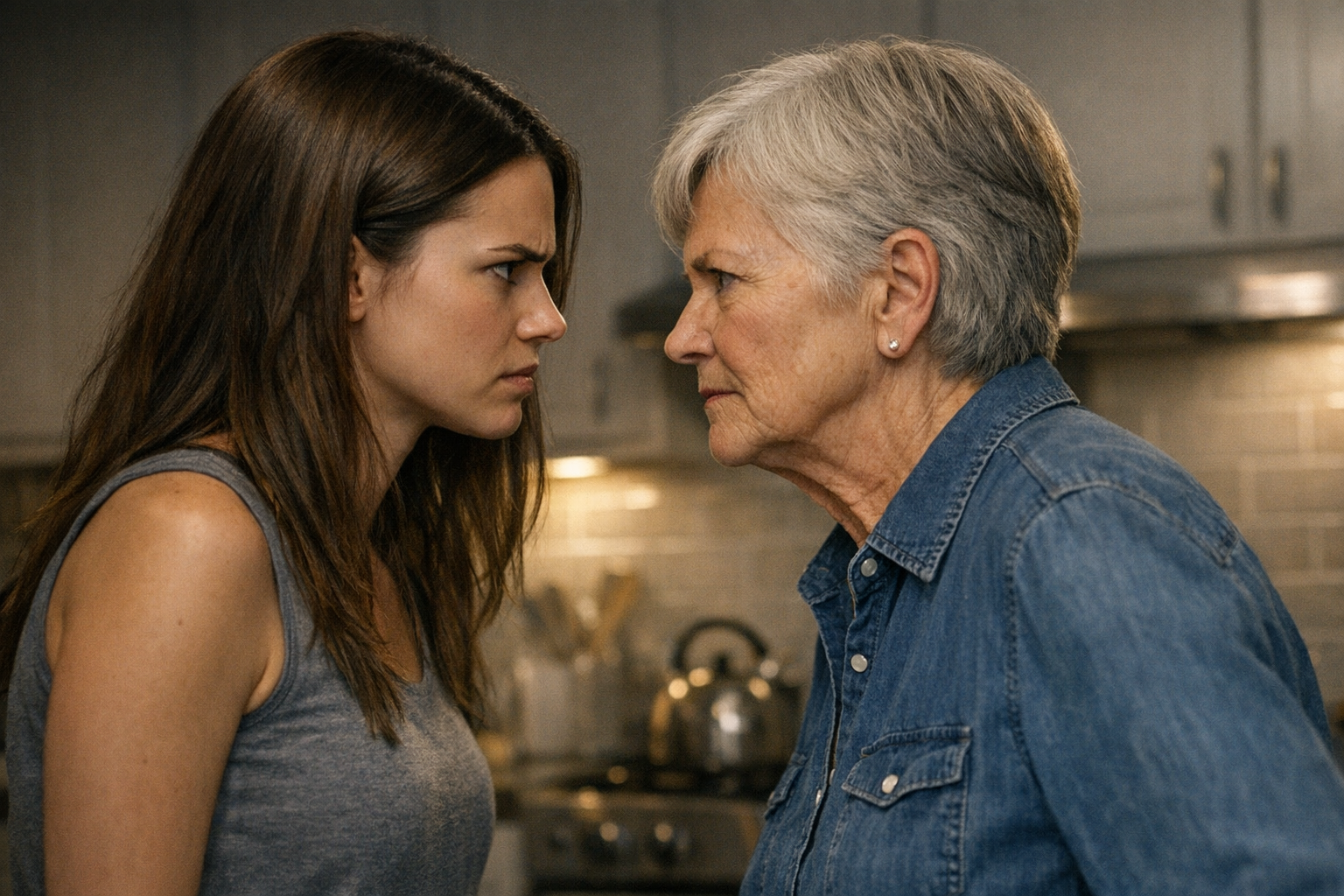 Fără să aștepte invitație, Rodica Popescu se îndreptă direct spre bucătărie. Prezența ei tulbură instantaneu ordinea impecabilă pe care Ioana o prețuia atât de mult. Suprafețele lucioase din oțel și liniile minimaliste ale mobilierului nu fuseseră concepute pentru asemenea demonstrații teatrale de afecțiune maternă. În cele din urmă, Andrei își desprinse privirea de ceașcă și își salută mama cu un zâmbet forțat și o înclinare slabă din cap.