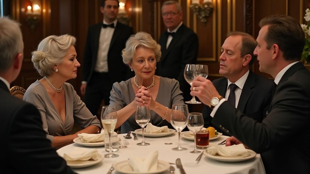 Aurelia Cătălinescu ocupa locul de onoare la capătul mesei. Stătea dreaptă, cu umerii trași înapoi, adunată în sine, asemenea unei corzi întinse la maximum. Împlinea șaizeci de ani. Purta o rochie din satin dens, de un gri grafit, iar la gât îi strălucea un lănțișor fin cu perlă — darul soțului ei, plecat dintre cei vii de ani buni. Bijuteria nu era valoroasă prin preț, ci prin amintirea pe care o păstra cu sfințenie.