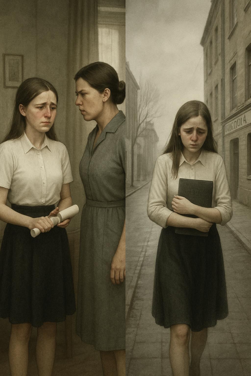 Fata nu a îndrăznit să o contrazică. Imediat ce i s-a înmânat diploma, a părăsit clădirea școlii. Mergea pe stradă cu lacrimile curgându-i pe obraji. Încă o dată își confirma ceea ce simțea de ani întregi: mama nu o iubise niciodată.