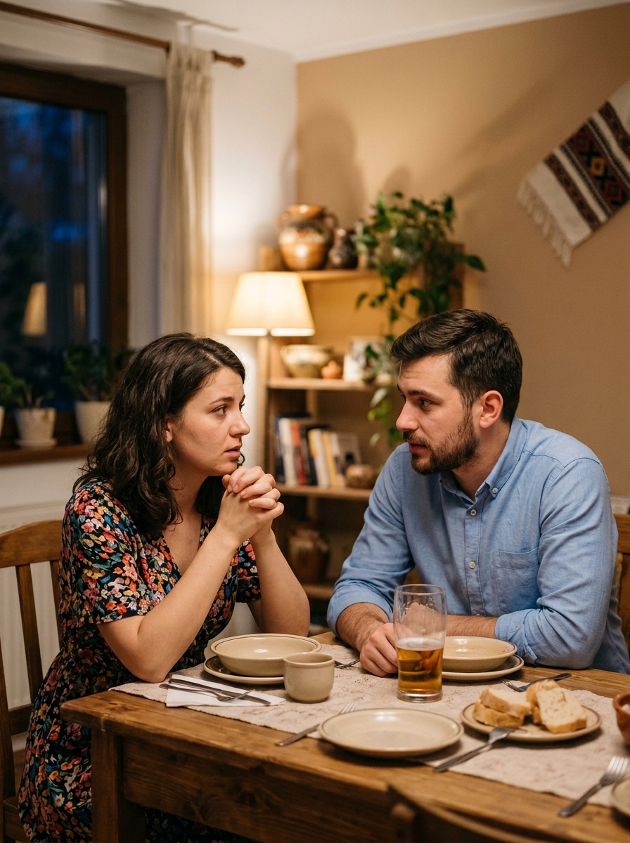 Adrian Nicolae stătea în fața ei, rezemat comod de spătarul scaunului, cu acea siguranță calmă care îi apărea de fiecare dată când discuția ajungea la bani sau planuri de viitor. În bucătăria lor micuță, luminată seară de seară de lustra veche ce împrăștia o lumină gălbuie, se așternuse o liniște subțire, spartă doar de bâzâitul constant al frigiderului. În interiorul ei s-a mișcat ceva greu de definit — nu chiar supărare, mai degrabă o uimire amestecată cu reflexul obișnuit de a ceda.