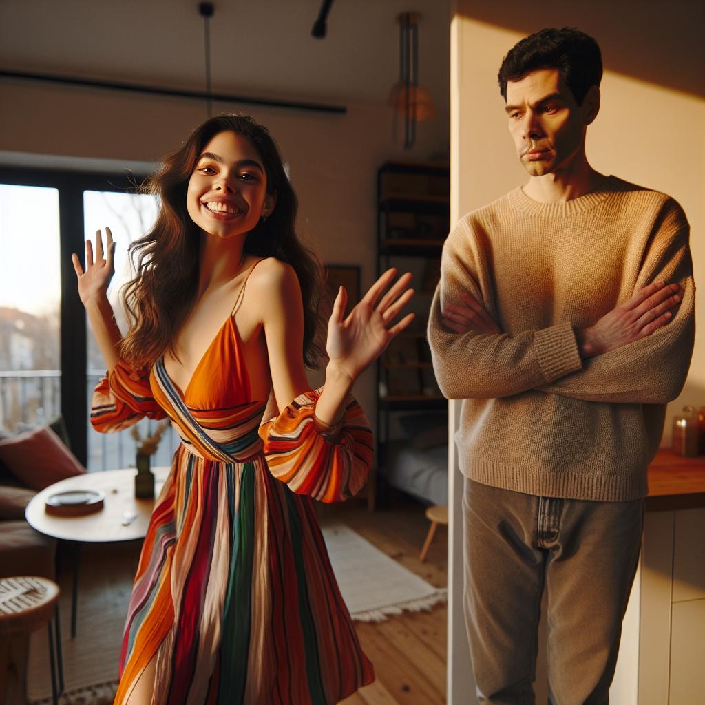 Andrei Popescu, fiind un tip pragmatic, a propus să se mute în ianuarie, zicând că nu prea are chef să se agite înainte de Anul Nou și oricum chiria la apartamentul închiriat este plătită până la sfârșitul lunii. Elena Ionescu, o fată mai romantică, a refuzat categoric și a declarat: