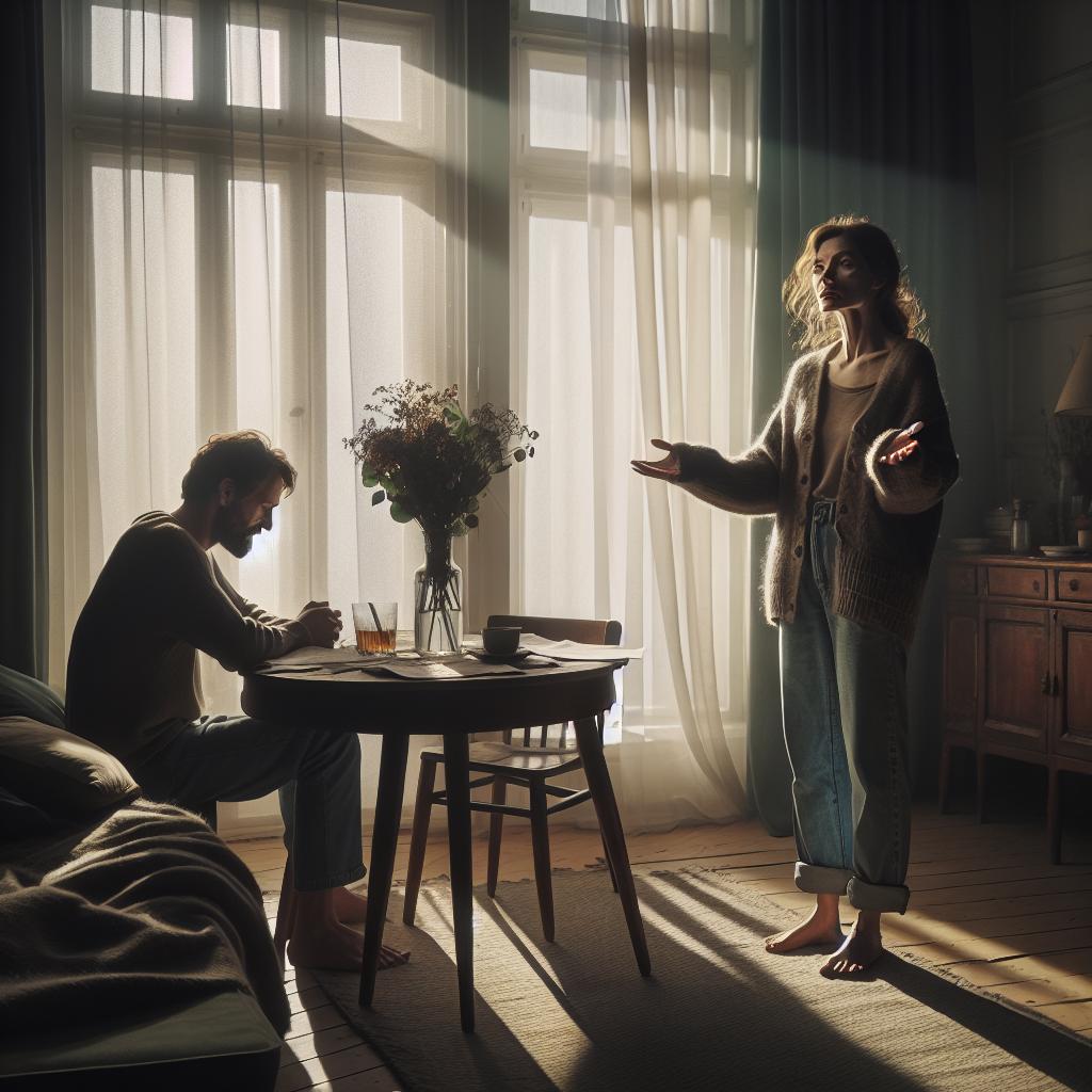 Soțul a tărăgănat fără replici clare; iar ea s-a simțit rănită și s-a retras în bucătărie: