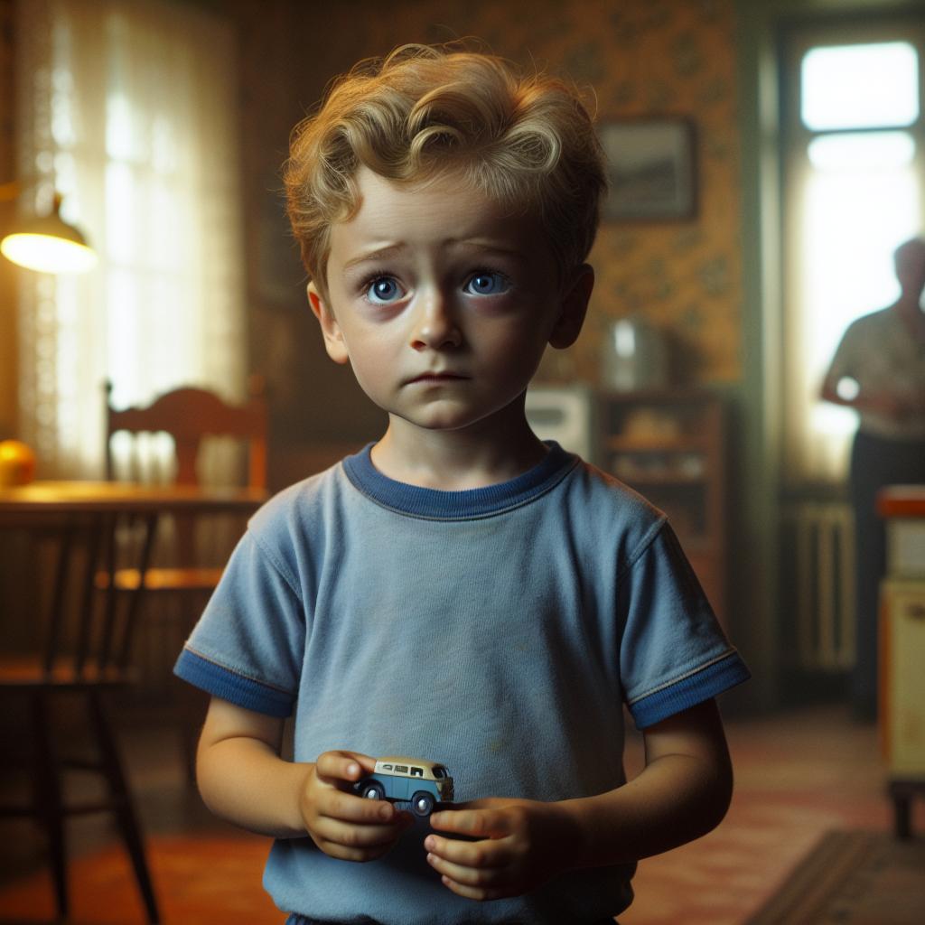 Băiețelul blond nu înțelegea ce voiau să spună oamenii mari. La urma urmei, la ei acasă totul era bine! Avea o mulțime de mașinuțe și tot felul de jucării. Și tatăl lui era cel mai bun din lume, nicidecum un bunic. Împreună lansau bărcuțe pe pârâiașe.