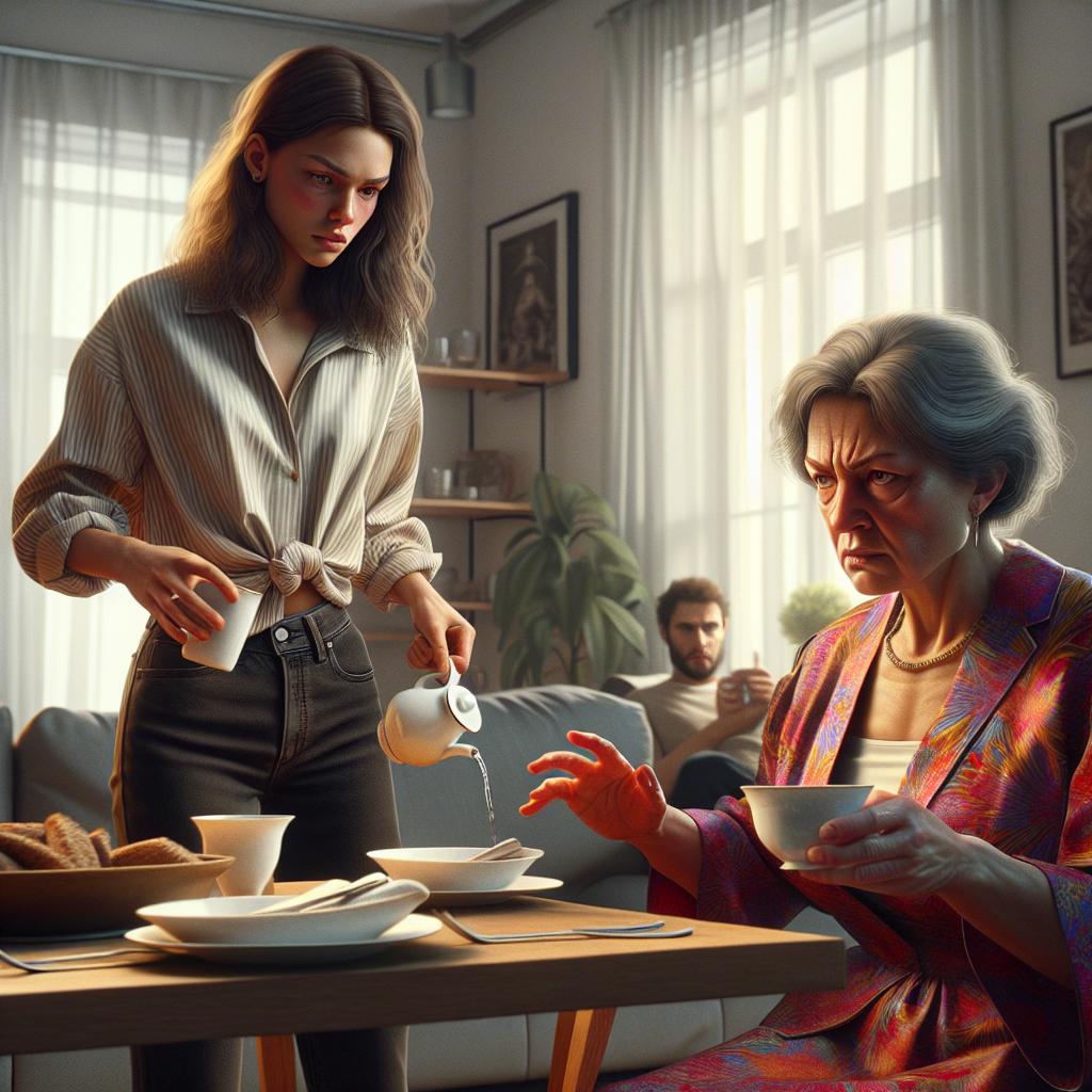 Turnă apă fierbinte în ceașcă, încercând să nu tremure de furie. Ceainicul era greu ca răbdarea ei.