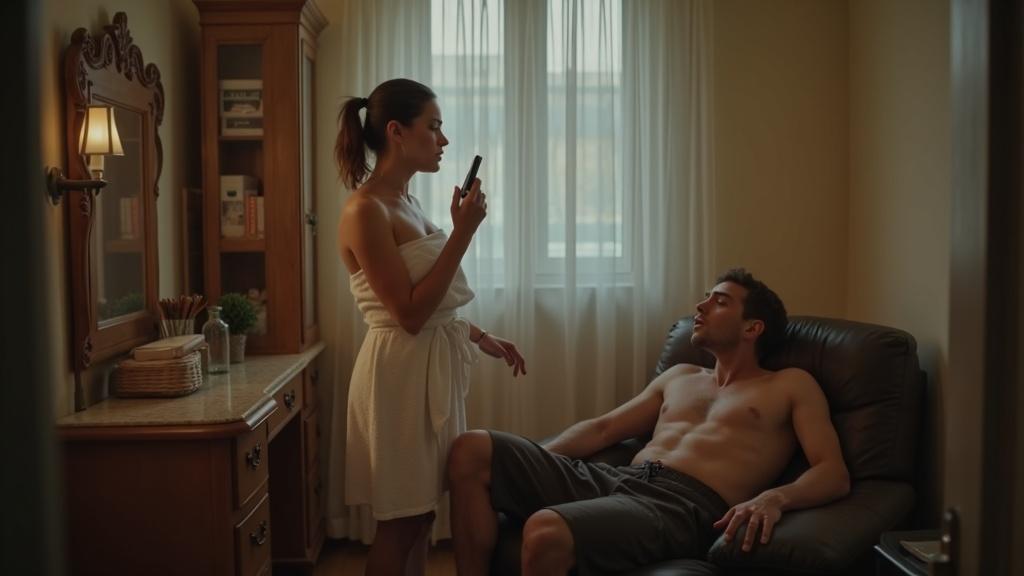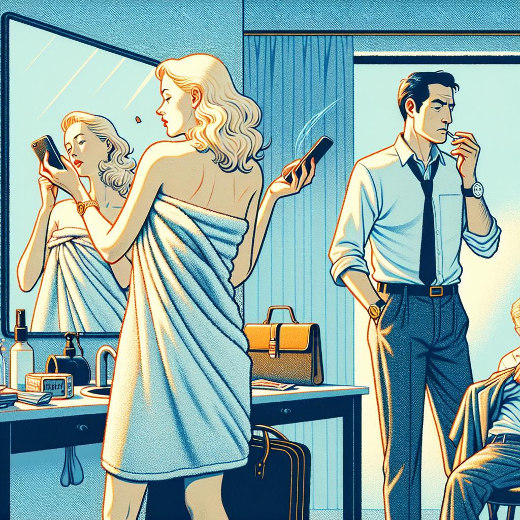 Ioana ieșise din duș, înfășurată într-un prosop, dar prosopul nu acoperea chiar tot. Da-a… parcă a născut doi copii și totuși ce siluetă! Și sus, și jos — exact cum trebuie, și talia subțire… uite ce femeie!