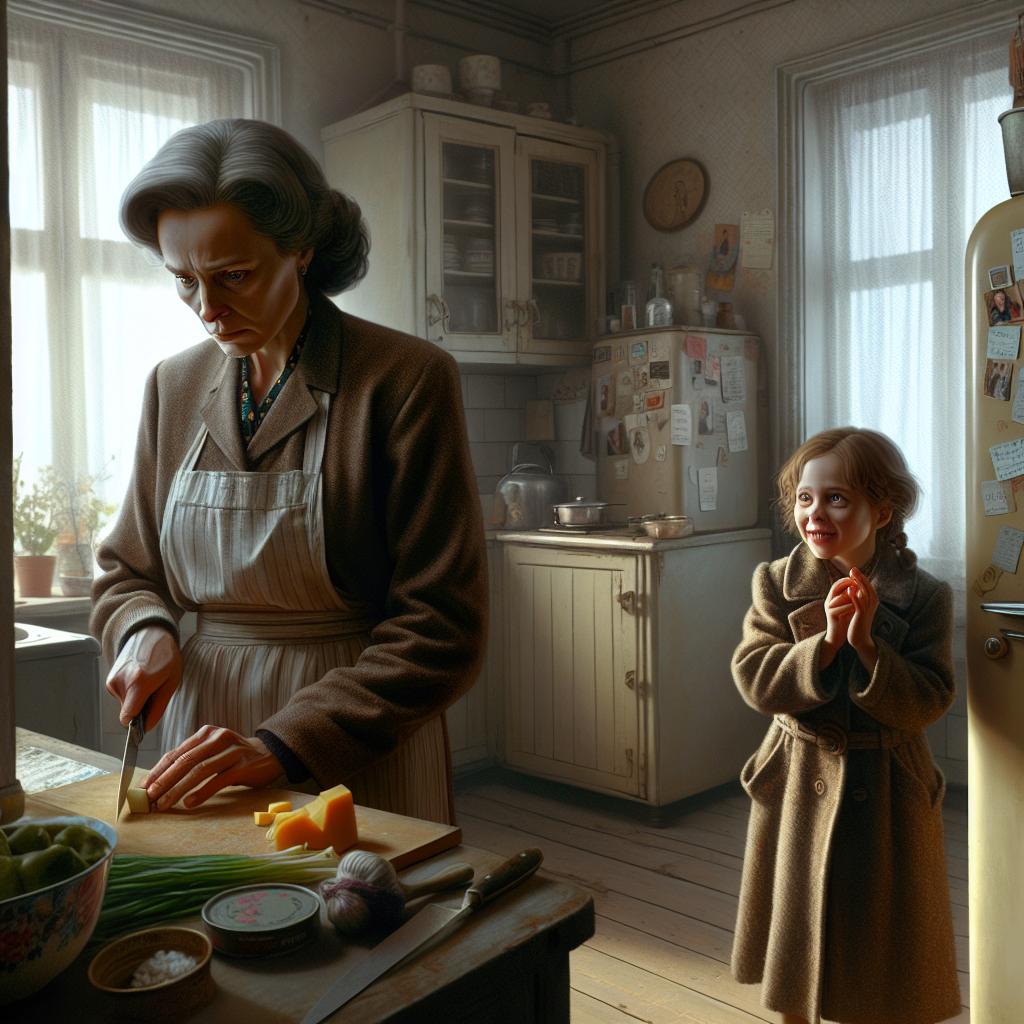 Tatiana stătea la aragaz într-un șorț impecabil. Privirea ei alunecă peste Ioana de sus până jos, trezindu-i acesteia sentimentul bine cunoscut de vinovăție. Pentru ce anume — nici ea nu știa exact.