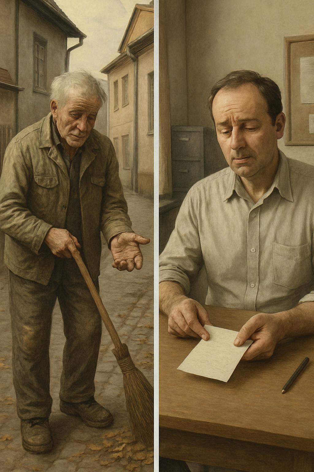 Dar totul se schimbă. Vârsta își spune cuvântul. Liviu a crezut mereu că va munci până la capăt, cât timp îl vor ține puterile. Dar de curând, în timp ce făcea curat pe alee, a observat cât de repede obosește. Mâinile care altădată manevrau mătura fără efort acum, spre sfârșitul turei, abia se mai ridicau.