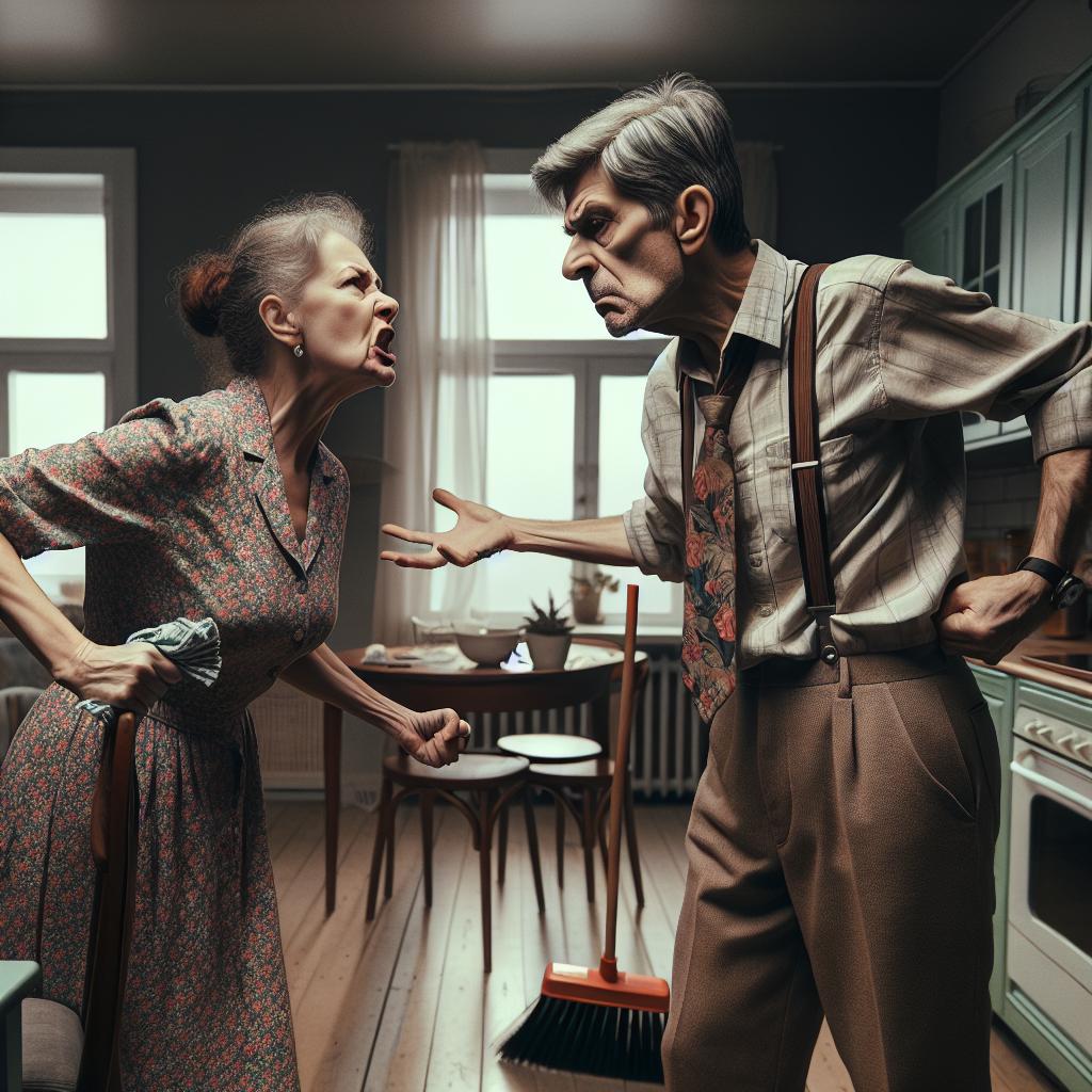 — Mișa, dar asta nu e motiv să arunci farfuria în perete! – strigă Anca. – Acum ia mătura și fă curat după tine!
