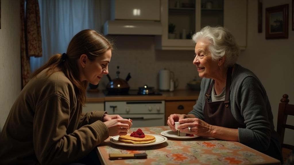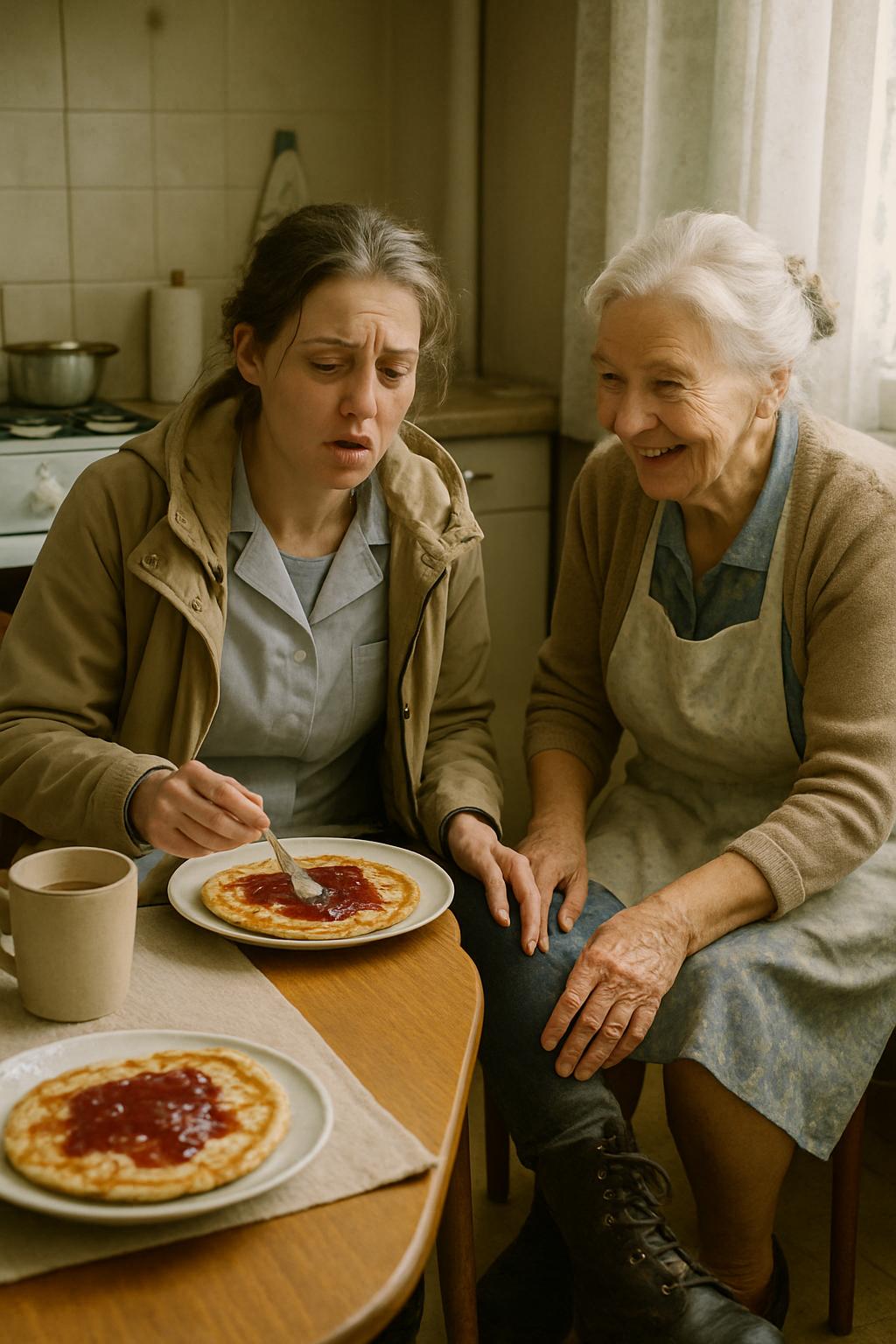 — Simțeam eu cu inima că ai să treci pe la mine. Am și copt clătite dis-de-dimineață. Hai, dezbracă-te, spală-te pe mâini și vino la masă.