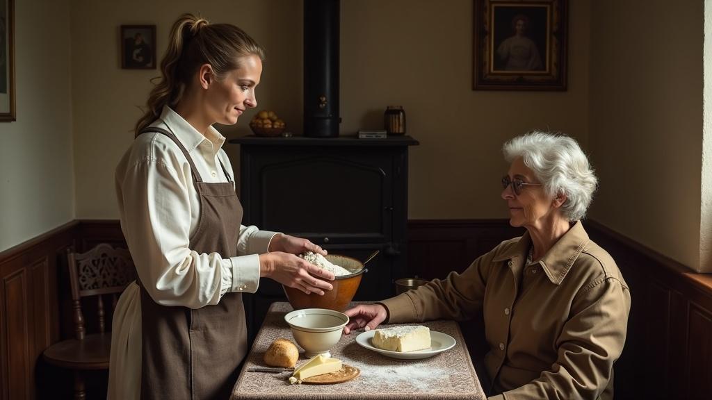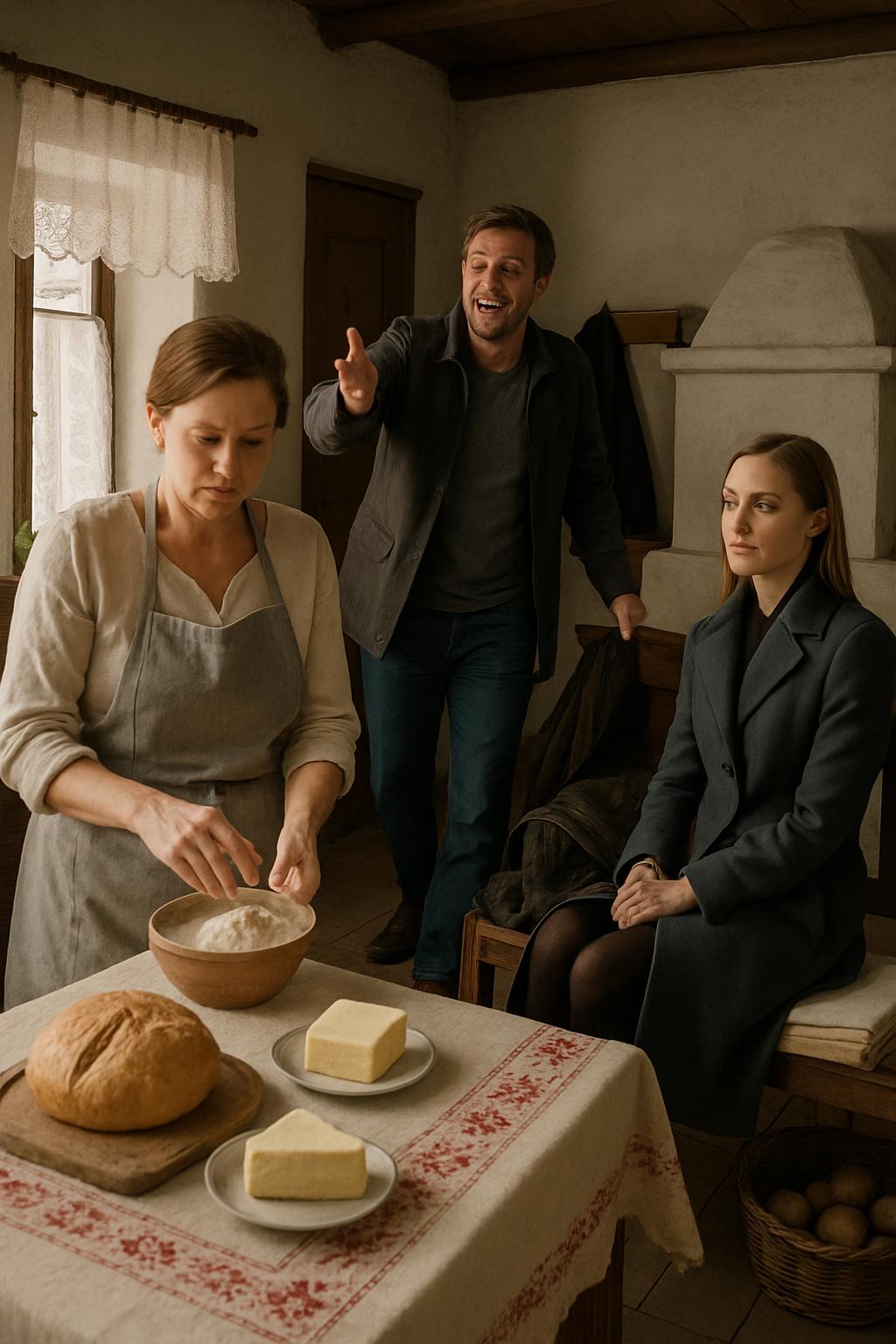— Intrați, — spuse Ana în cele din urmă, coborând privirea spre mâinile ei și scuturând făina de pe degete. — Vreți ceai?
